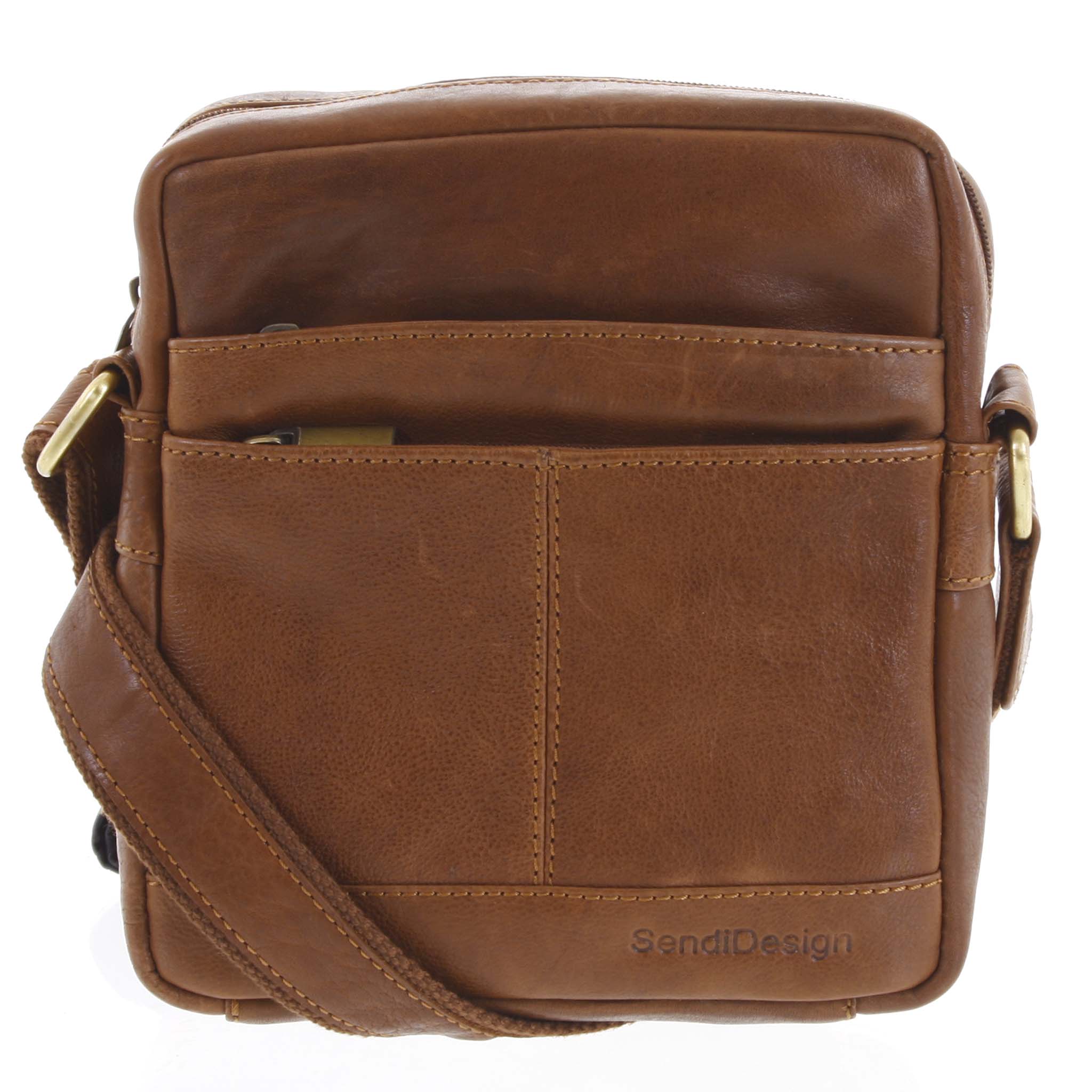 Štýlová, hnedá pánska taška cez plece alebo crossbody, od značky SendiDesign. Kvalitná hovädzia kože je odolná, tašku tak môžete nosiť každý deň, do mesta, do práce alebo na nákupy. Užitočná Vám bude aj pri ceste autom. Uložíte si do nej všetky osobné veci. Predná strana Vám ponúkne dve stredné vrecká so zipsami na veci, ktoré treba mať po ruke. Do vrecka na zips na zadnej strane vložíte pár proteínových tyčiniek na desiatu. Vnútri hlavného vrecka, ktoré sa otvára zipsom, je voľné miesto na smartfón, doklady, kľúče, cennosti, drobnosti a napríklad aj diár alebo obal na okuliare. Taška je mäkká, ale drží svoj tvar. Polokožený popruh je podšitý pevnou látkou. Logo značky nájdete vyrazené v rohu prednej strany. O bjednejte ešte dnes a vyskúšajte, vrátiť ju môžete až za 30 dní! Doplňte svoj outfit, nebudete ľutovať!