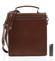 Pánske, luxusné, hnedé, väčšie, kožené etue (na výšku) s uchom talianskej značky ItalY. Vnútri sú dve hlavné priehradky oddelené priehradkou na zips, priehradka na prednej strane a vrecko na zips na zadnej strane. Dovnútra sa zmestí tablet s max. rozmermi 20 x 26 cm. Etue pojme peňaženku, telefón, kľúče a ďalšie nevyhnutné veci. Súčasťou je odnímateľný kožený popruh cez plece.