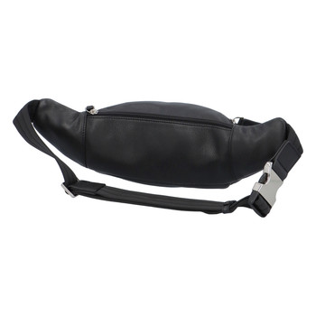 Luxusný pánsky model od francúzskej značky Hexagona. Objednajte ešte dnes a vyskúšajte! Vrátiť ju môžete až za 30 dní! Táto čierna celokožená pánska ľadvinka má vráskavý, klasickyý moderný design. Bude sa vám hodiť pri cestovaní autom, v meste alebo aj prechádzkach a výletoch. Uložiť si tu môžete osobné veci ako je telefón, peňaženka a kľúče, prípadne aj nejaké drobnosti. Oválna, stredne veľká ľadvinka vám úschovu týchto vecí umožní. Popruh je silný, nylonový, s kovovou striebornou sponou. Hlavné vrecko sa otvára pomocou zipsu, detail jazdca je kožený. Logo značky nájdete v ľavom dolnom rohu. Ďalšie vrecko so zipsom je na zadnej časti ľadvinky.
