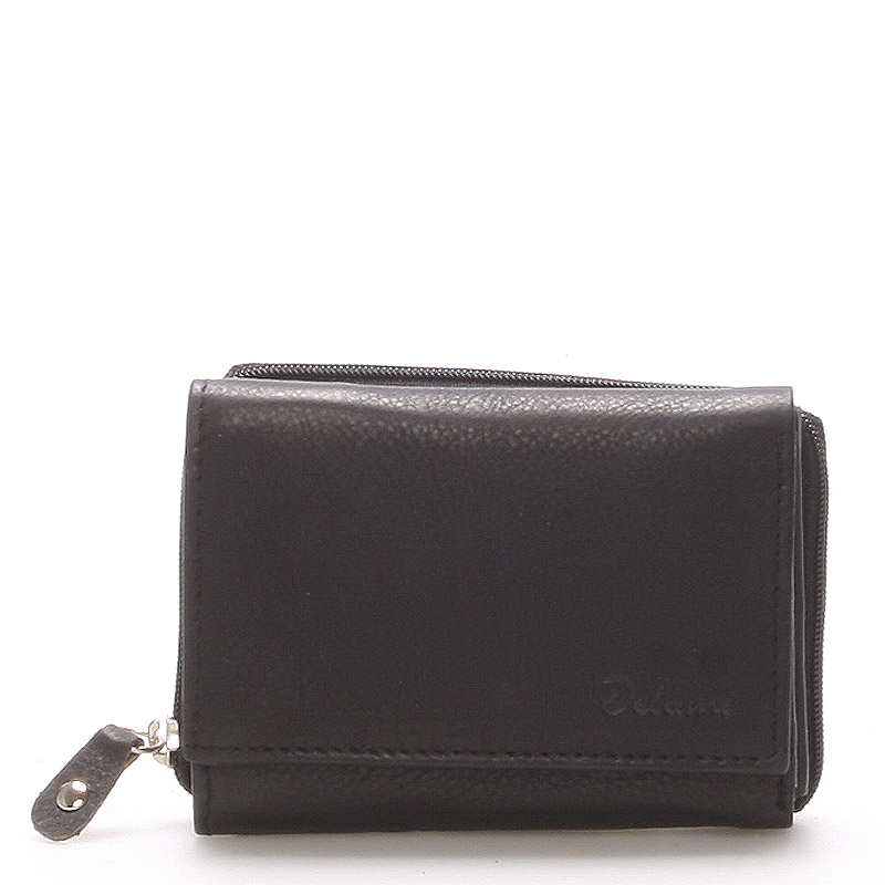 Kvalitná, menšia jemná kožená peňaženka Delami, z čiernej teľacej kože, je skvelou voľbou. Ponúka všetky potrebné priehradky pre bankovky, vizitky či karty, ktoré sa zatvárajú pomocou cvočka. Priehradky na mince sú chránené zipsom.