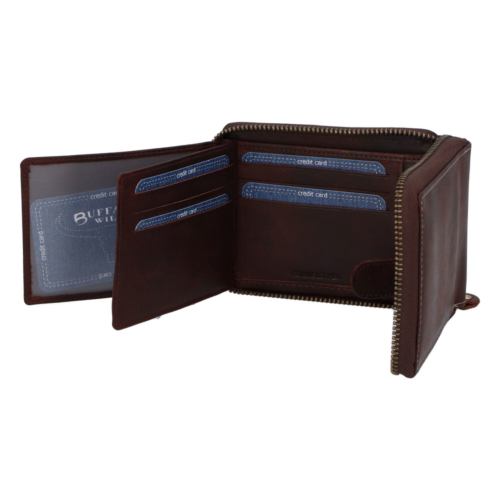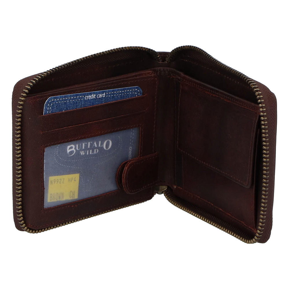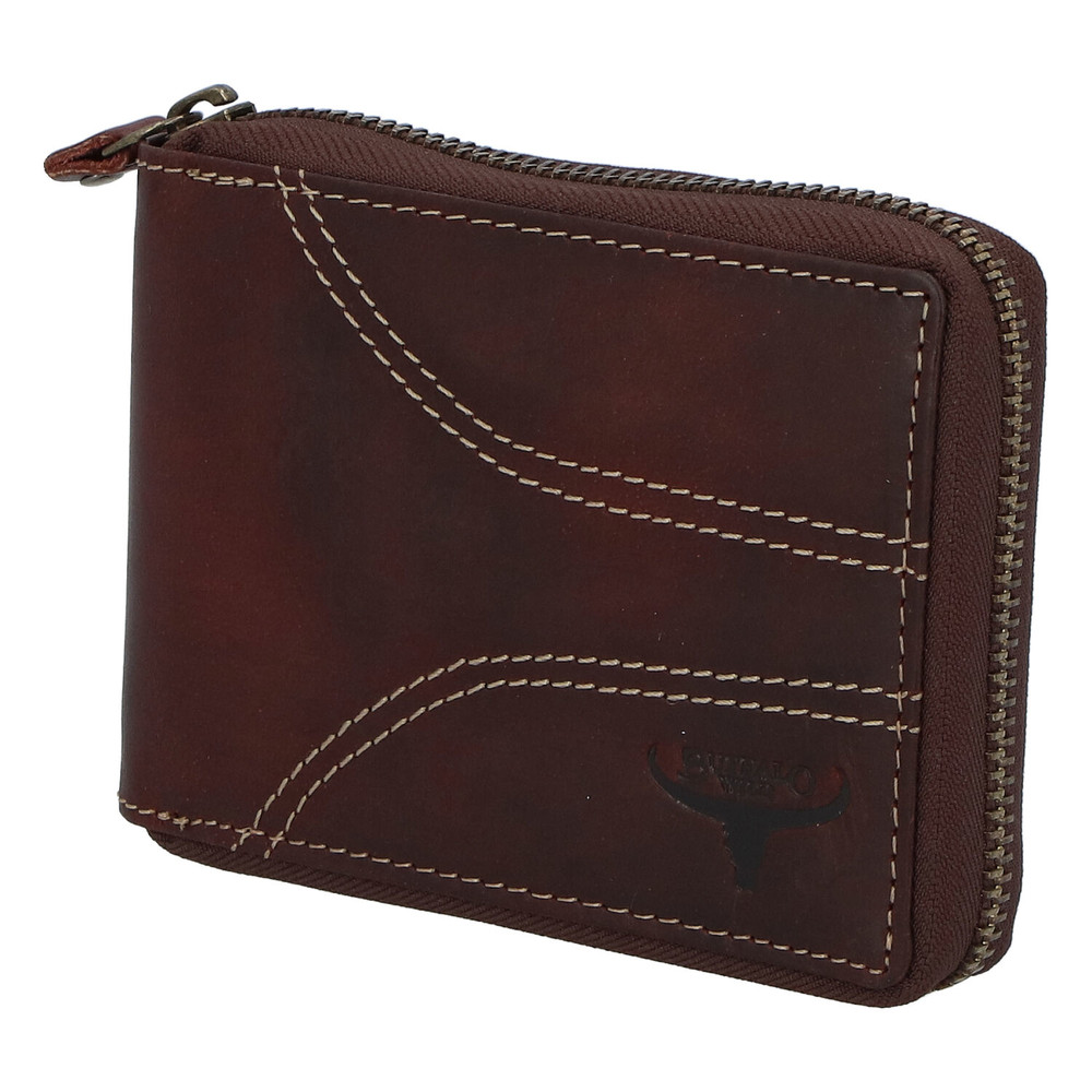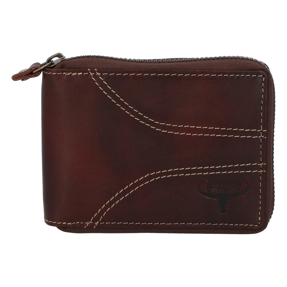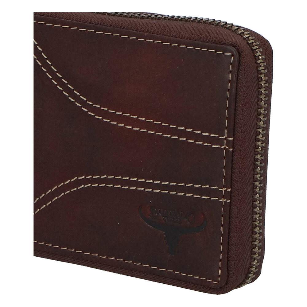 Pánska kožená brúsená peňaženka na zips hnedá - BUFFALO Bul