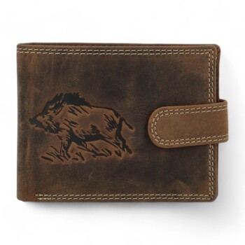 Krásna hnedá peňaženka od značky Diviley, ktorá vás zaujme svojou kvalitou a krásnym motívom divokého kanca vypáleným na prednej strane. Precízne spracovanie obľúbeného strihu peňaženky z veľmi kvalitnej, príjemnej brúsenej kože sa naozaj vydarilo. Peňaženka je šitá na šírku a je zaistená zápinkou. Po otvorení ponúka priestor na bankovky a vrecko na cvok pre mince. Vnútri nájdete aj stredové zipsové vrecko a ďalšiu zápinku, kde sa ukrývajú priehradky na platobné karty, doklady a vizitky. Štýlová a praktická peňaženka, pre všetky vaše doklady. Tento kožený kúsok zdobí prešitie po obvode, ktoré dodáva peňaženke šmrnc. Dodávané v darčekovej krabičke. Objednajte ešte dnes a vyskúšajte! Vrátiť ju môžete až do 30 dní!
