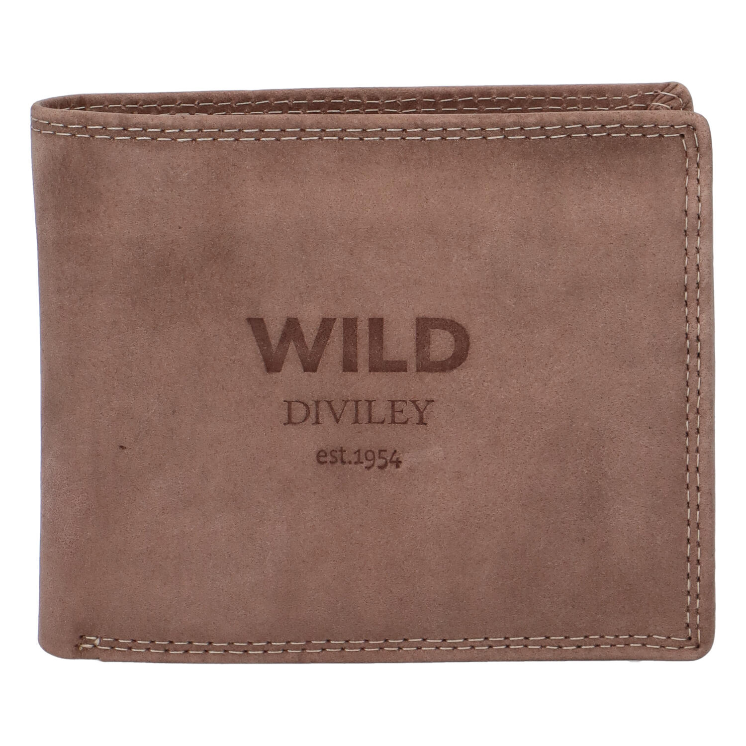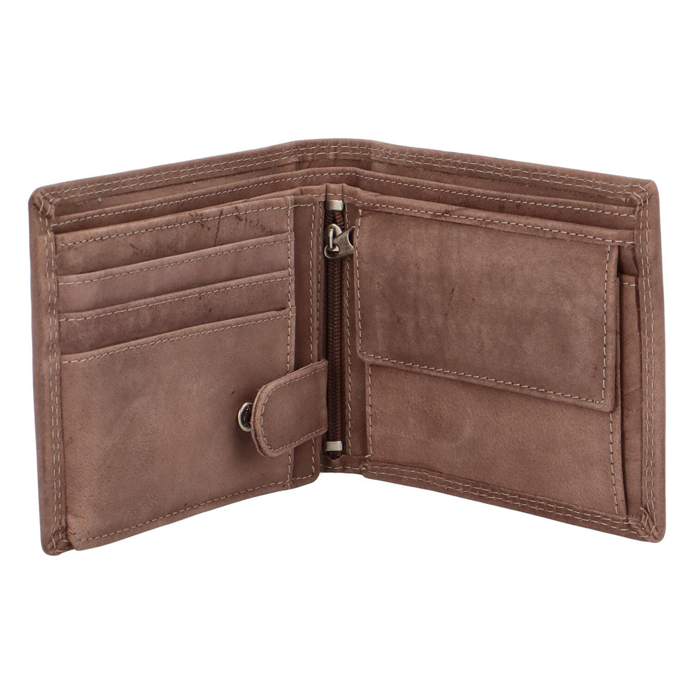 Kvalitnú pánsku peňaženku bez zápinky si vyberie takmer polovica mužskej populácie. Ak máte aj vy záujem o skvelú voľnú peňaženku z taupe brúsenej hovädzej kože, teraz máte možnosť! Objednajte ešte dnes a vyskúšajte! Vrátiť ju môžete až za 30 dní! Značka WILD je tu pre vás a ponúka vám kvalitnú peňaženku s klasickými priehradkami. Nájdete tu kapsičku na mince s cvočkom, dve priehradky na bankovky, jednu kapsičku so zipsom na cennosti a blok na doklady či kreditné karty s ôsmimi priehradkami. Logo je vyrazené do prostrednej časti prednej strany peňaženky. Prešitie svetlou niťou je dvojité, kontrastné. Charakteristika kože nemôže byť predmetom reklamácie.