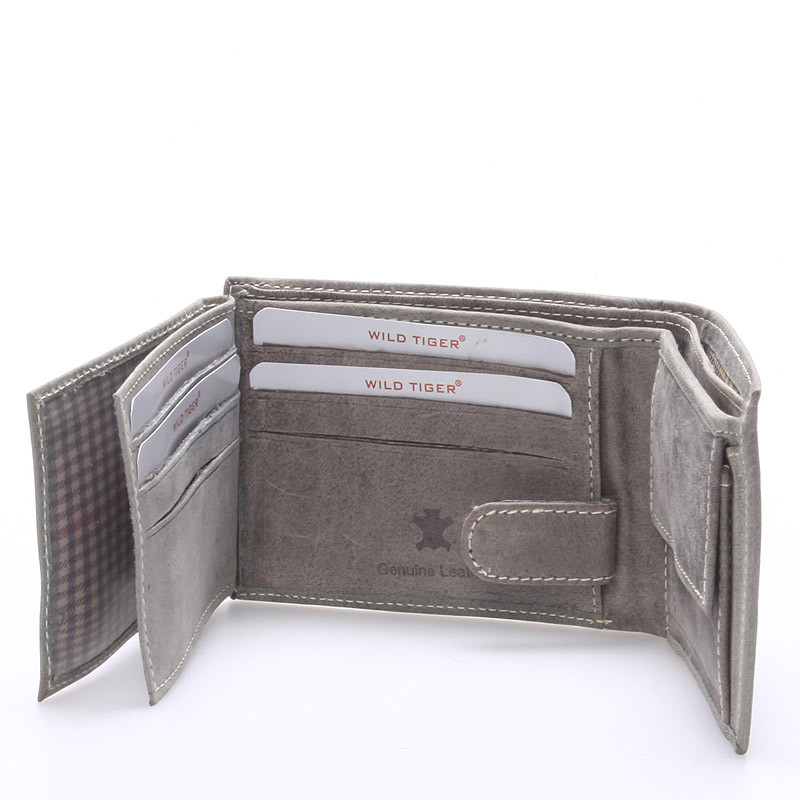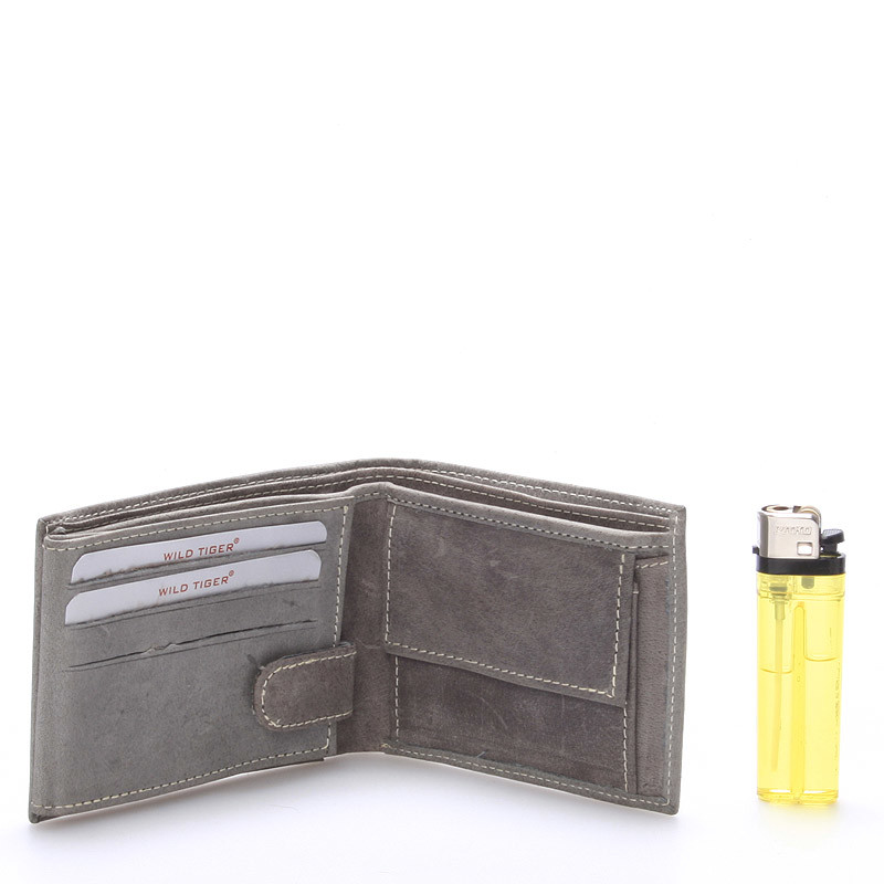 Kvalitná kožená rozkladacia peňaženka WILD v šedej farbe z pravej brúsenej kože je kvalitne spracovaná, takže Vám bude dlho slúžiť. Ponúka všetky potrebné priehradky pre bankovky, mince či karty. Novinka!