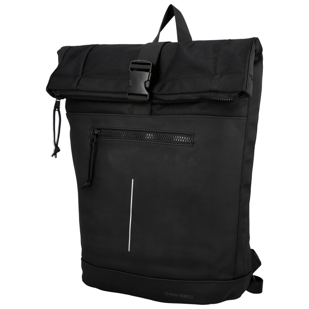 Unisex roll-on batoh New Rebels v kombinácii pogumovaného materiálu a pevnej textílie ponúka moderný vzhľad aj vysokú odolnosť pre každodenné použitie. Rolovacia časť je z kvalitnej textílie, zatiaľ čo telo batohu tvorí pogumovaný materiál chrániaci obsah pred vlhkosťou. Pre zvýšenie bezpečnosti je batoh doplnený tenkým reflexným prvkom, ktorý zlepšuje viditeľnosť za šera.