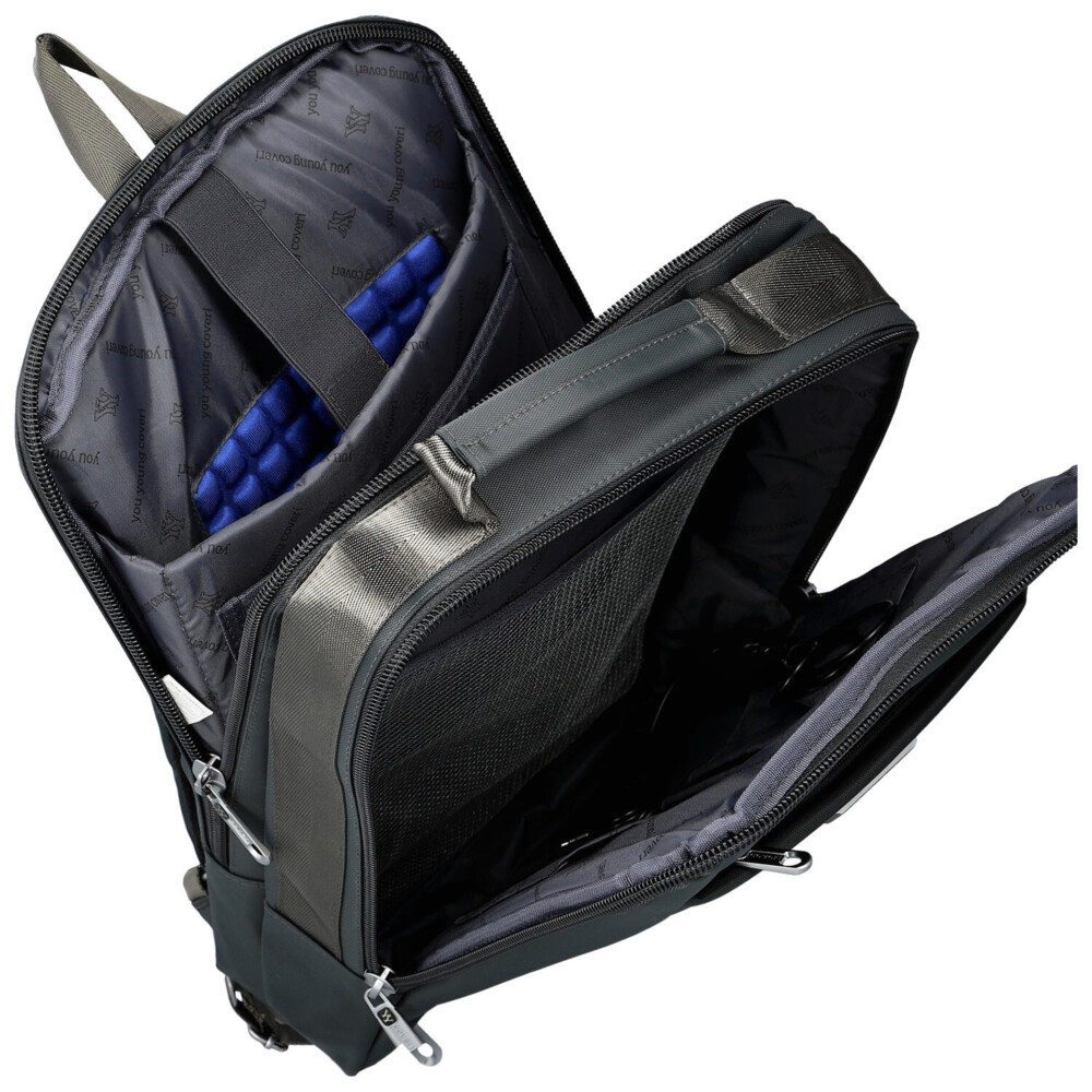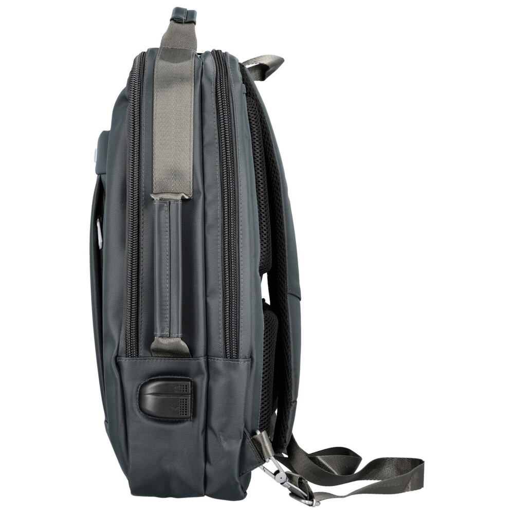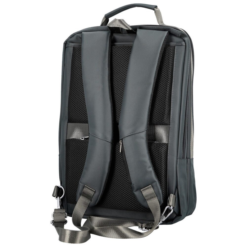 Praktický textilný batoh s elegantným a funkčným designom. Ponúka dve hlavné zipsové vrecká, prvé s polstrovanou priehradkou na notebook, druhé s organizérom na drobnosti. Prednú stranu zdobí zvislé vrecko na zips a kovové logo značky. Batoh je vybavený pevným uchom ako na vrchu, tak aj na boku, takže ho môžete nosiť aj ako tašku. Polstrovaný chrbát a nastaviteľné ramenné popruhy zaisťujú pohodlné nosenie. Kovové zipsy v striebornej farbe podčiarkujú moderný vzhľad. Vhodný na prácu, štúdium i cestovanie. Objednajte ešte dnes a vyskúšajte, vrátiť ho môžete až do 30 dní!