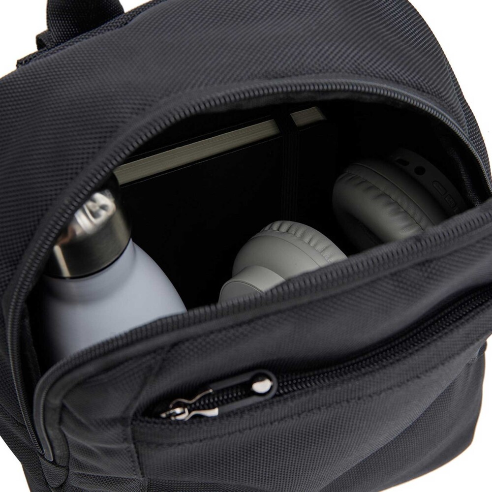 Objednajte ešte dnes a vyskúšajte, vrátiť ho môžete až za 30 dní! Praktický a štýlový látkový batoh značky Mustang v modernom mestskom a napriek tomu športovom dizajne. Ľahký, veľmi odolný a ideálny na každodenné nosenie do práce, školy aj na voľný čas. Tento malý čierny batoh je skvelou voľbou pre mestský život. Popruhy sú z polyesteru, ľahko širšie. Hlavné vrecko na zips je priestranné. Ďalšie vrecká so zipsami sú na prednej aj zadnej strane batohu, tu nájdete aj menšie vrecká na drobnosti a cennosti.