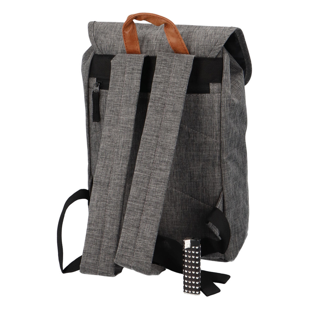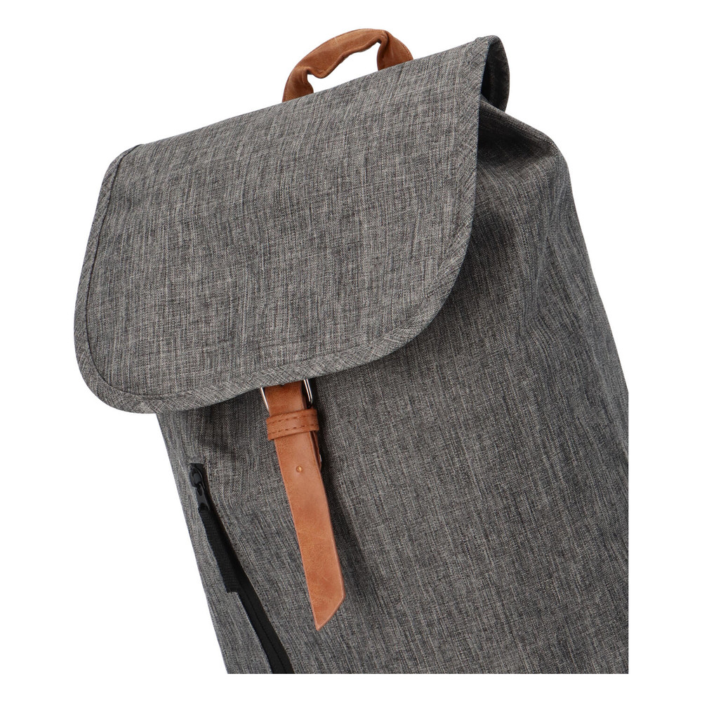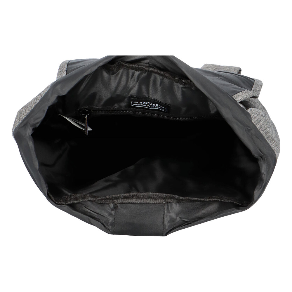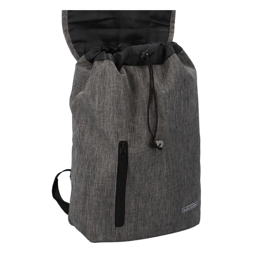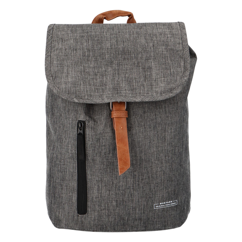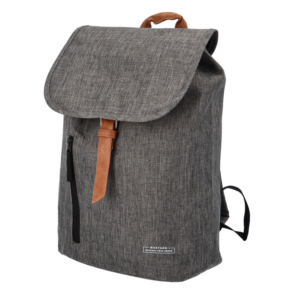 Tento kvalitný sivý batoh Mustang bude spoľahlivým látkovým partnerom na každý deň. Má štýlovú chlopňu s hnedým remienkom zo syntetickej kože, ktorý funguje na magnetický cvoček. Dno i zadná časť batohu je vystužená. Hlavný priestor možno stiahnuť šnúrkou, chýba tu vrecko na notebook, ale ak sa bez vrecka zaobídete, vlezie sa do batohu notebook s max. veľkosťou 34 x 31 cm. Skvelý priestor ponúka navyše tri menšie až stredne veľké vrecká so zipsom na cennosti a drobnosti. Novinka a top model! Objednajte ešte dnes a vyskúšajte! Vrátiť ho môžete až za 30 dní! Poslúži pri prechádzkach prírodou, na nákupoch alebo v meste za zábavou. Detaily batohu sú v čiernej farbe.