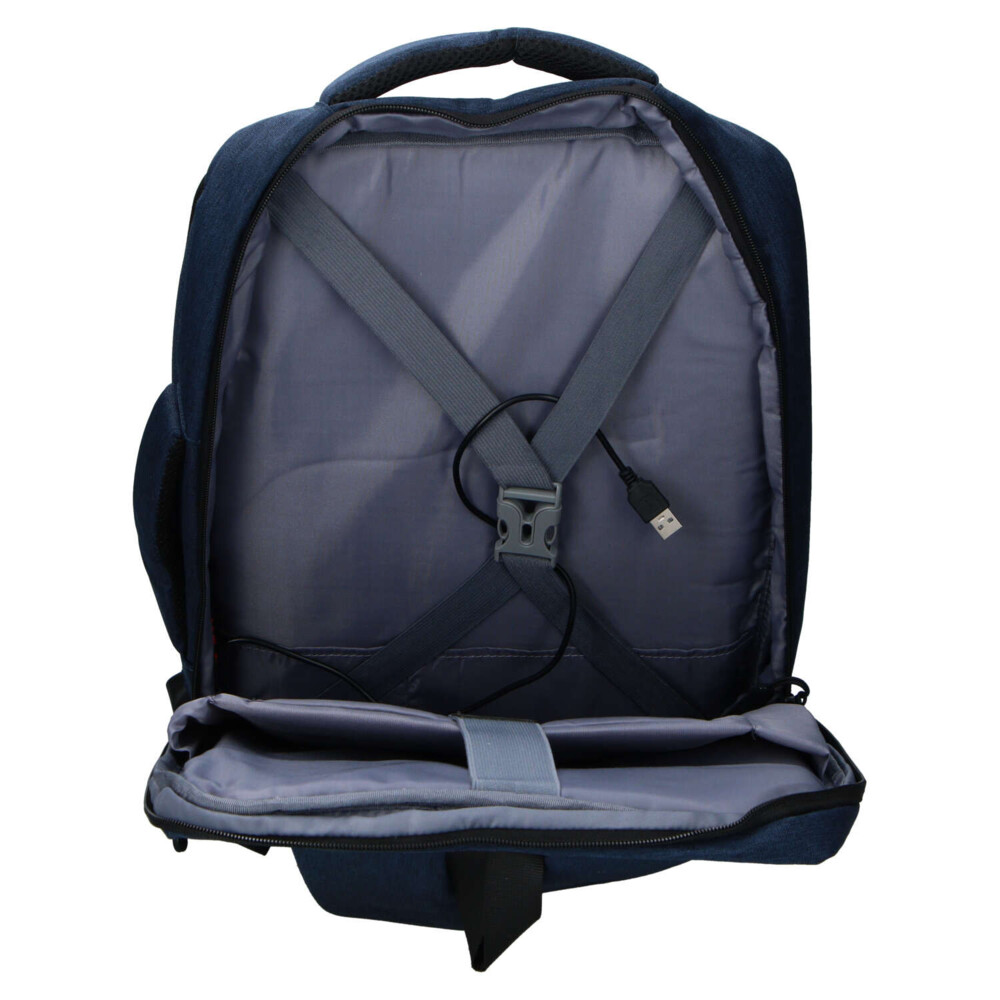 Luxusný textilný batoh s elegantným a funkčným designom. Ponúka dve hlavné zipsové vrecká, prvé s polstrovanou priehradkou na notebook, druhé s organizérom na drobnosti a praktickou odnímateľnou kľúčenkou. Predná strana disponuje vodorovným vreckom so zipsom a ďalším zvislým. Obe hlavné vrecká majú dvoch jazdcov a rozopnúť ich možno až takmer ku dnu batohu. Batoh je vybavený pevným uchom ako na vrchu, tak aj na boku, takže ho môžete nosiť aj ako tašku. Skvele ho využijete v práci, ale aj na cestách osobných aj pracovných. Polstrovanie na chrbte aj ramenách je samozrejmosť. Celkový vzhľad batohu je moderný. Bonusom je nabíjací kábel na boku batohu. Objednajte ešte dnes a vyskúšajte, vrátiť ho môžete až do 30 dní!