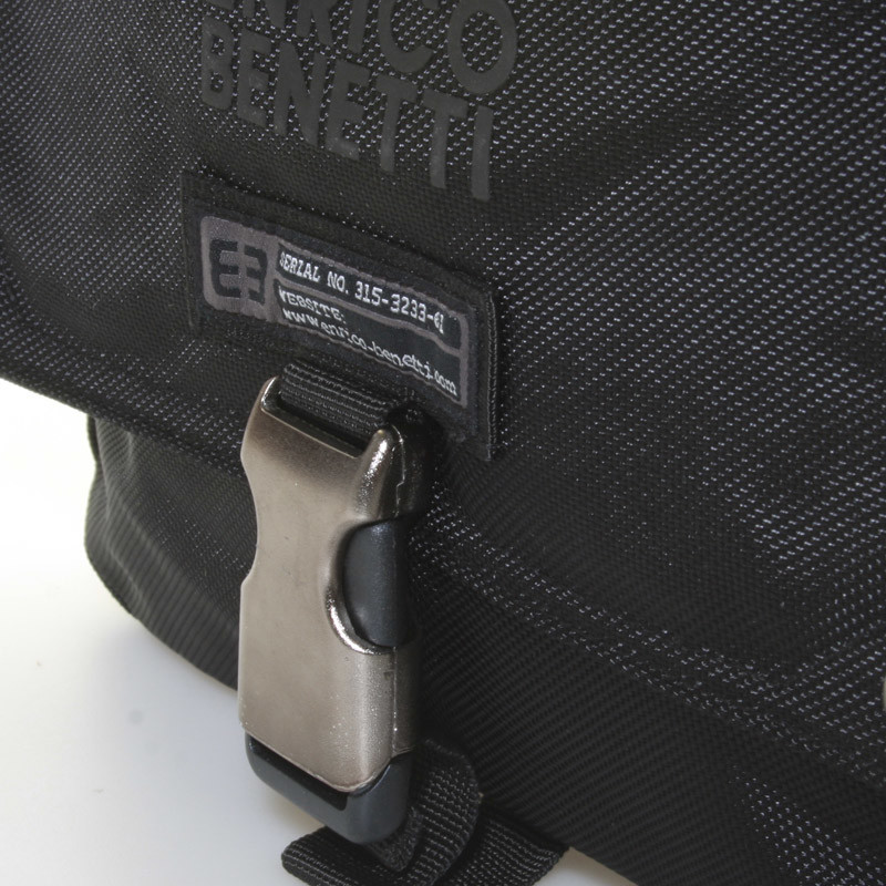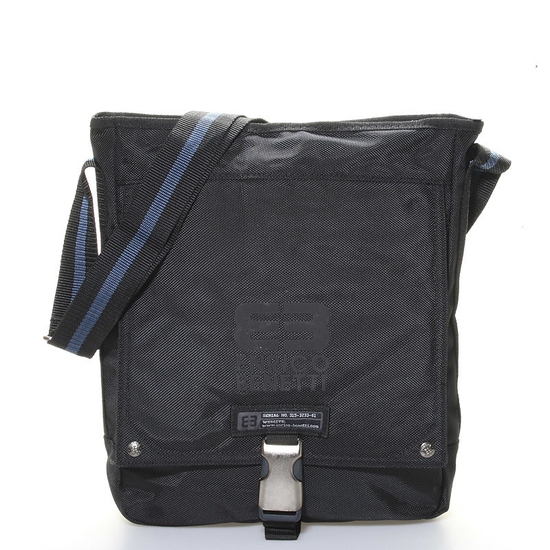 Čierna cool taška cez rameno Enrico Benetti . Taška má priehradku na tablet s maximálnymi rozmermi 24 x 29 cm. Do tašky sa zmestí aj notebook 13". Vnútri je nedelený priestor, ďalej postranné kapsičky. Chlopňa je na suchý zips so sponou a pod ňou je ďalšie vrecko na zips. Súčasťou tašky je nastaviteľný popruh.