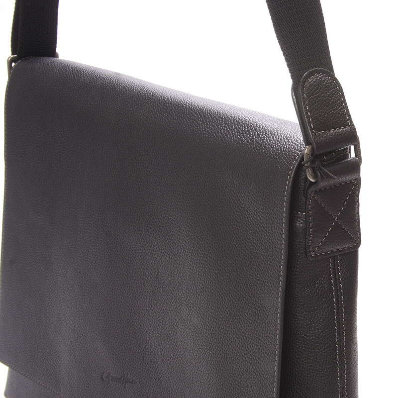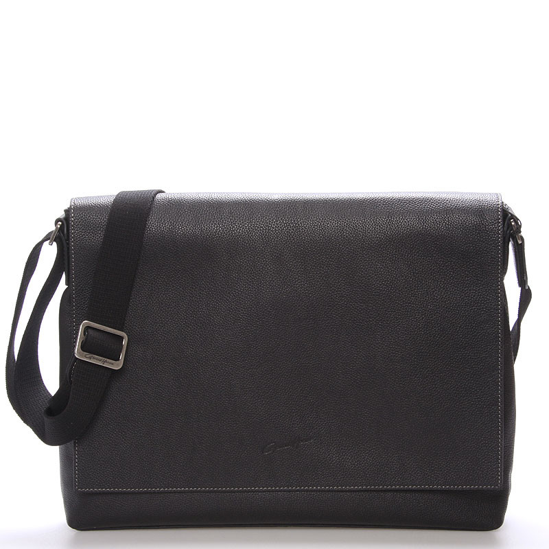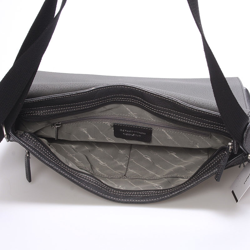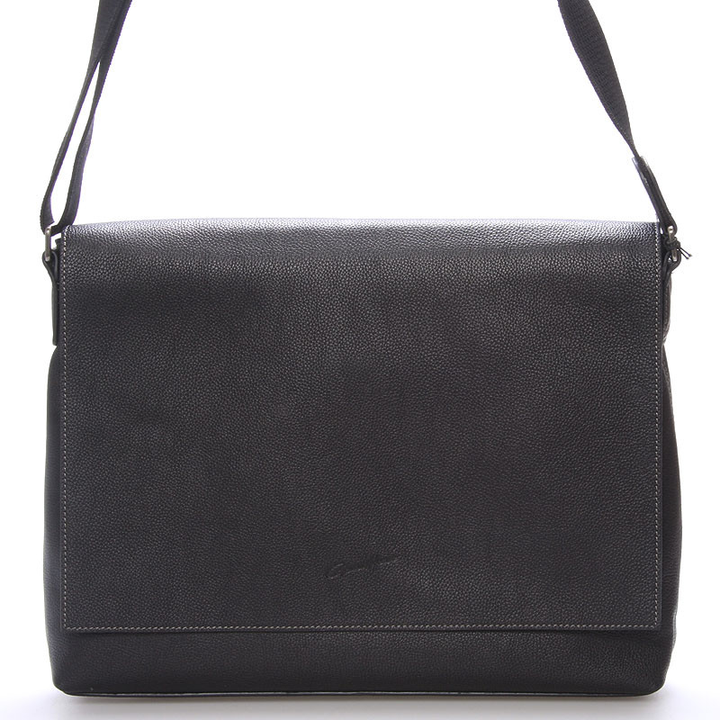 Čierna luxusná originálna kožená taška na rameno Gerard HENON pre mužov čo majú úroveň. Je módna, ale pritom praktická. Telo tašky je z hovädzej kože, kvalitne spracované, a prešívané. Taška patrí medzi väčšie a zatvára sa chlopňou. Je jednofochová s menšími vreckami na drobnosti. Na prednej strane pod chlopňou je ďalšie vrecko na zips. Novinka. Objednajte ešte dnes a vyskúšajte, vrátiť ju môžete až do 30 dní!
