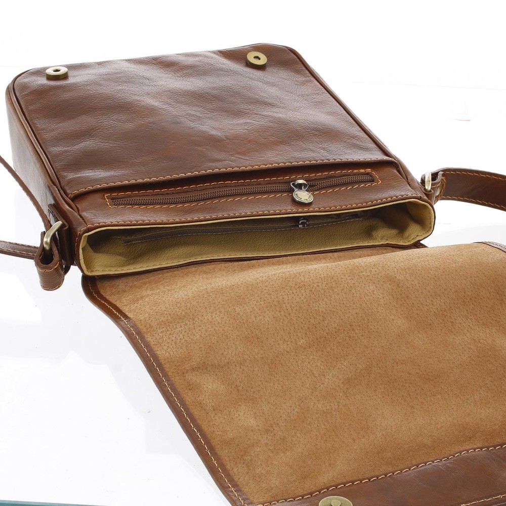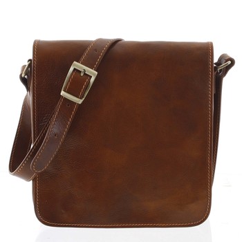 Pánska luxusná kožená taška cez plece antukovohnedá - ItalY Jamar