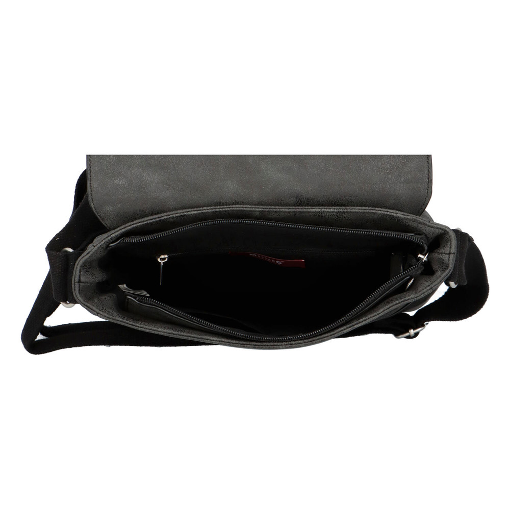 Novinka! Kvalitná a štýlová značka Mustang. Objednajte ešte dnes a vyskúšajte! Vrátiť ju môžete až za 30 dní. Stredne veľká taška v antracitovej farbe s čiernymi detailmi Vám ponúkne zvislé vrecko na klope, ktoré sa otvára magnetickým cvočkom. Hlavné vrecko tašky sa otvára zipsom, vo vnútri sú ďalšie tri malé vrecká na drobnosti či cennosti. Využiť môžete aj zadné vrecko so zipsom. Popruh, vďaka ktorému môžete nosiť tašku crossbody alebo cez plece, je pevnejší látkový.
