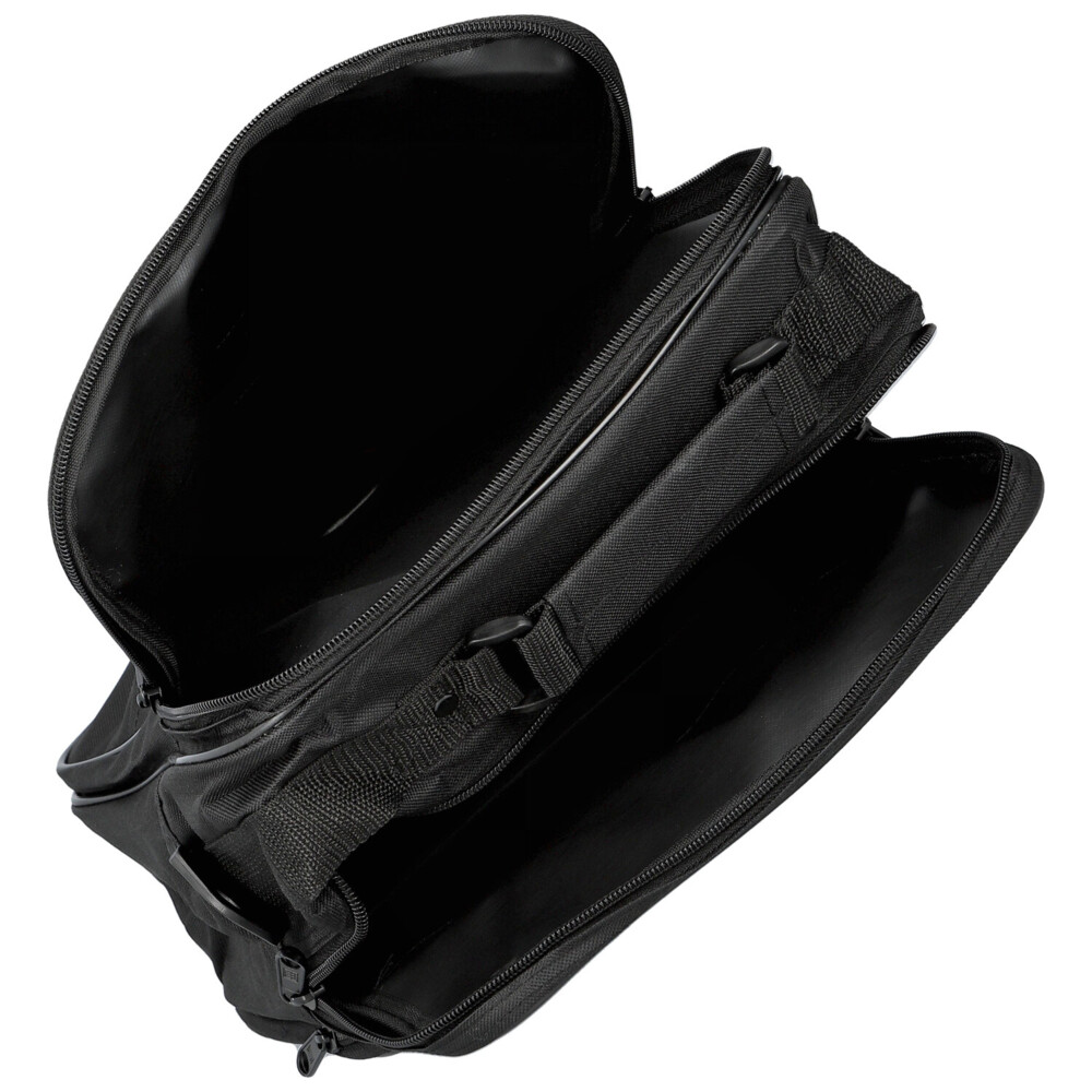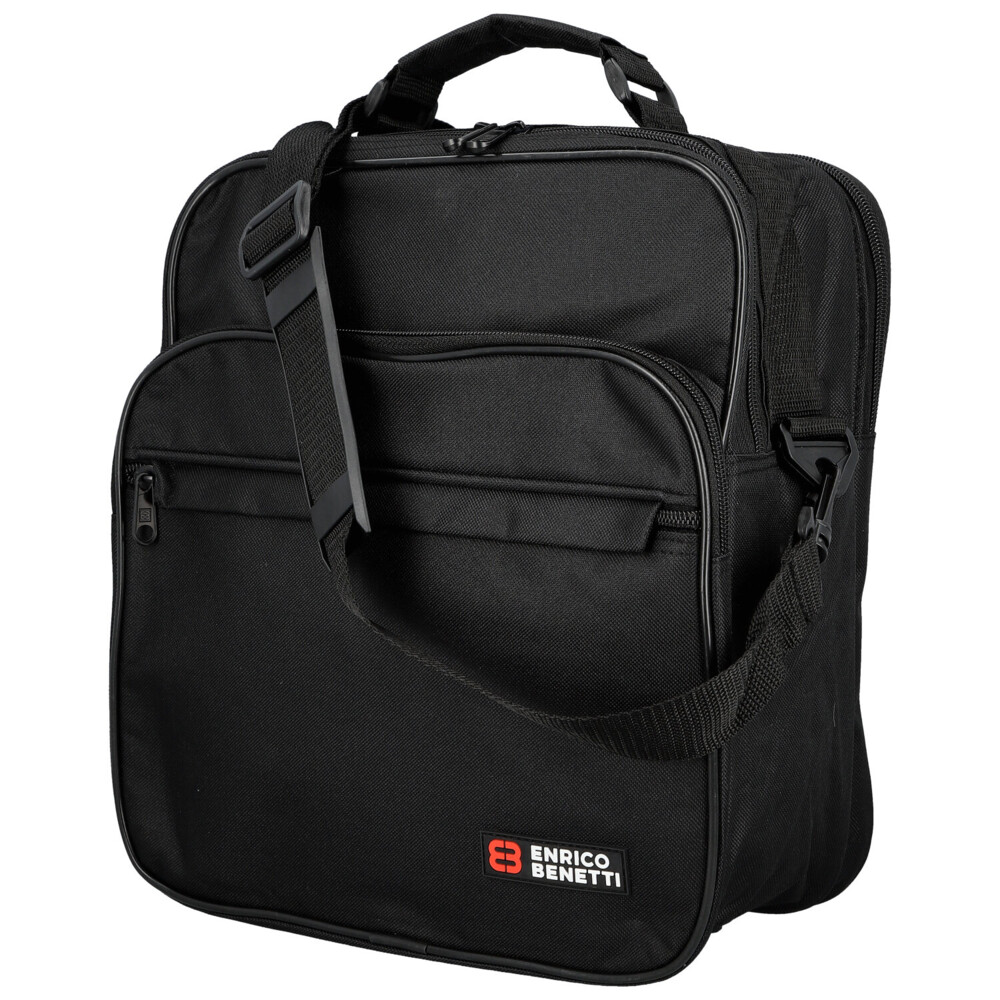 Obzeráte sa po kvalitnej, ale nie veľmi drahej, tašky cez plece, v látkovom prevedení, s ktorou môžete ísť do práce, do posilňovne alebo aj do lietadla? Potom Vám môžeme ponúknuť skvelú čiernu tašku cez plece, od značky E nrico Benetti. Do tašky uložíte všetky potrebné veci, spisy aj oblečenie. Táto ľahká látková taška bude vyhovovať každému mužovi. Ponúka dve veľké hlavné vrecká a dve vrecká na prednej strane. Všetky sú so zipsami. Na zadnej strane je namiesto vrecka látkový pás so suchým zipsom, vďaka ktorému pripevníte tašku k madlu kufra pri cestách. Popruh je odnímateľný, klasický látkový, s gumovým posuvným vystužením na plece. Dno tašky je možné spevniť vložkou a stabilitu udržia štyri plastové cvoky. Objednajte ešte dnes a vyskúšajte! Vrátiť ju môžete až za 30 dní!