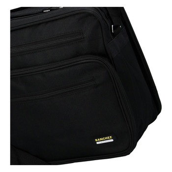 Stredne veľká pánska taška cez plece čiernej farby je látková a nosiť ju môžete vďaka popruhu cez plece alebo crossbody. Má tiež ľahko podšité ucho. Značka Sanchez prináša tašky do práce aj do mesta za skvelé ceny. Táto taška ponúka tri vrecká na zips na prednej strane. Hlavné vrecko je tiež na zips a na zadnej strane tašky je ďalšie veľké vrecko na zips, napríklad na dokumenty a spisy. Dno tašky je možné spevniť vložkou.