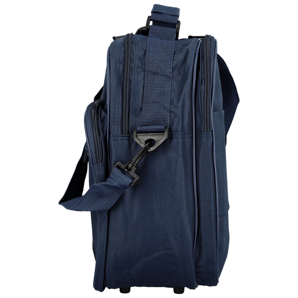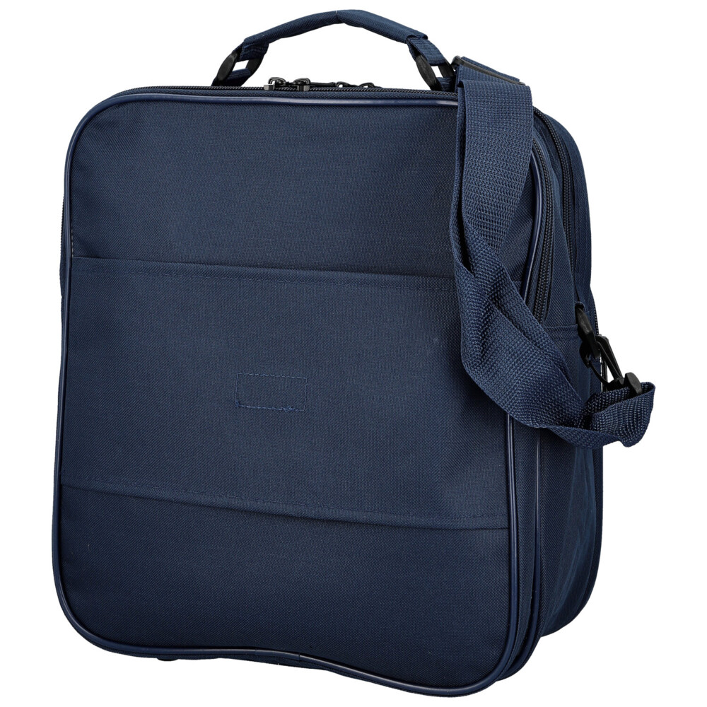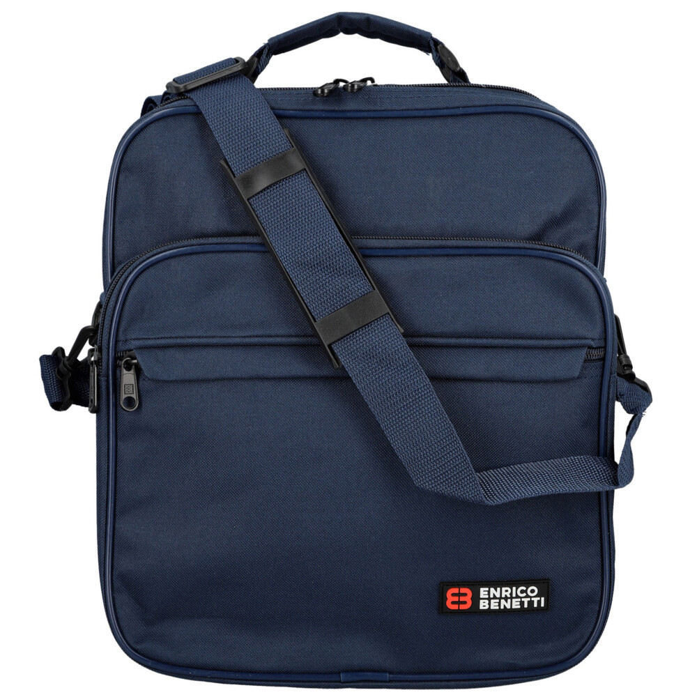 Obzeráte sa po kvalitné, ale nie veľmi drahé, tašky cez rameno, v látkovom prevedení, s ktorou môžete do práce, do posilňovne alebo aj do lietadla? Potom Vám môžeme ponúknuť skvelú čiernu tašku cez rameno, od značky E nrico Benetti . Objednajte ešte dnes a vyskúšajte, vrátiť ju môžete až za 30 dní! Do tašky uložíte všetky potrebné veci, spisy aj oblečenie. Táto ľahká látková taška bude vyhovovať každému mužovi. Ponúka dve veľké hlavné vrecká a dve vrecká na prednej strane. Všetky vrecká sú so zipsami. Na zadnej strane je miesto vrecka látkový pás so suchým zipsom, vďaka ktorému umiestnite tašku k madlu kufra pri cestách. Popruh je odnímateľný, klasický látkový, s gumovým posuvným polstrovaním na rameno. Dno tašky je možné spevniť vložkou a stabilitu udržia štyri plastové cvoky.