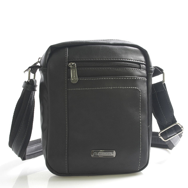 Čierna štýlová taštička na doklady cez rameno Bellugio . Hlavné vrecko je na zips, vnútri vrecko na mobil a vrecko na zips. Taška má všade plno praktických kapsičiek a pojme všetky potrebné doklady, kľúče, telefóny. Je vyrobená z kvalitnej koženky. Novinka 2016.