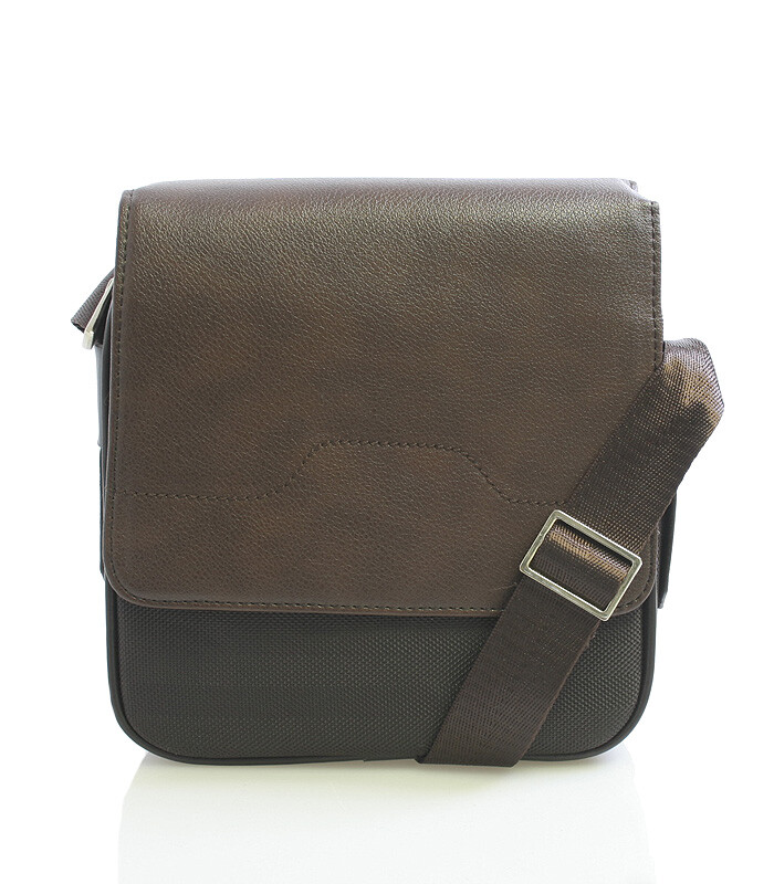 Hnedá taška cez rameno na doklady Delami. Taška drží tvar, po obvode je spevnená. Vovnútri má vrecko bez zipsu na mobil a jedno vrecko so zipsom. Zozadu ďalšie vrecko na mag. cvoček. Súčasťou dokladovky je nastaviteľný popruh z nylonu. Kovanie v striebornom prevedení. Taška je športovo elegantný, teda ju môžete nosiť ako k saku, tak i k rifliam.