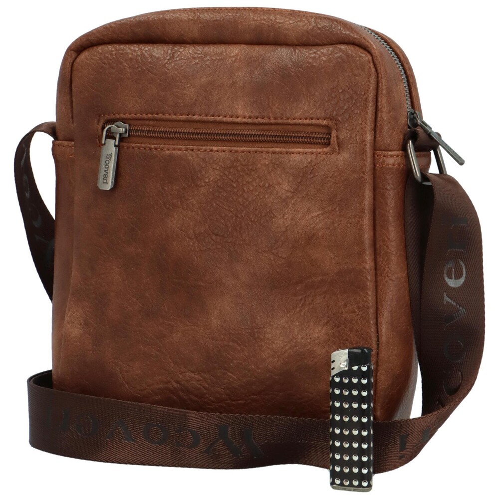 Štýlová hnedá taška cez rameno doplní každý pánsky outfit. Je zo syntetickej kože a na prednej strane má kovové logo značky Coveri v tmavostriebornej farbe aj menšie schované zipsové vrecko. Hlavné vrecko potom v sebe ukrýva bočné vrecká v podšívke pre drobnosti. Posledný úložný priestor v podobe malého vrecka so zipsom je v zadnej časti. Taška má dlhý popruh z textílie, na ktorom je vyrazené logo značky. Popruh je široký a vďaka nastaviteľnej dĺžke sa bude pohodlne nosiť cez rameno aj do kríža. Objednajte ešte dnes a vyskúšajte! Vrátiť ju môžete až do 30 dní!