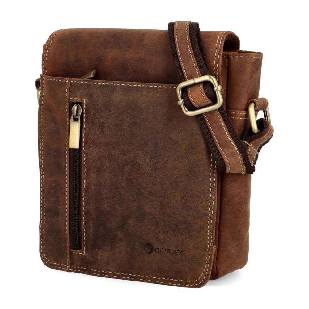 Pánska kožená crossbody/taška hnedá brúsená - Diviley Theodore