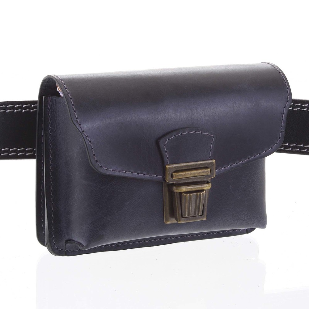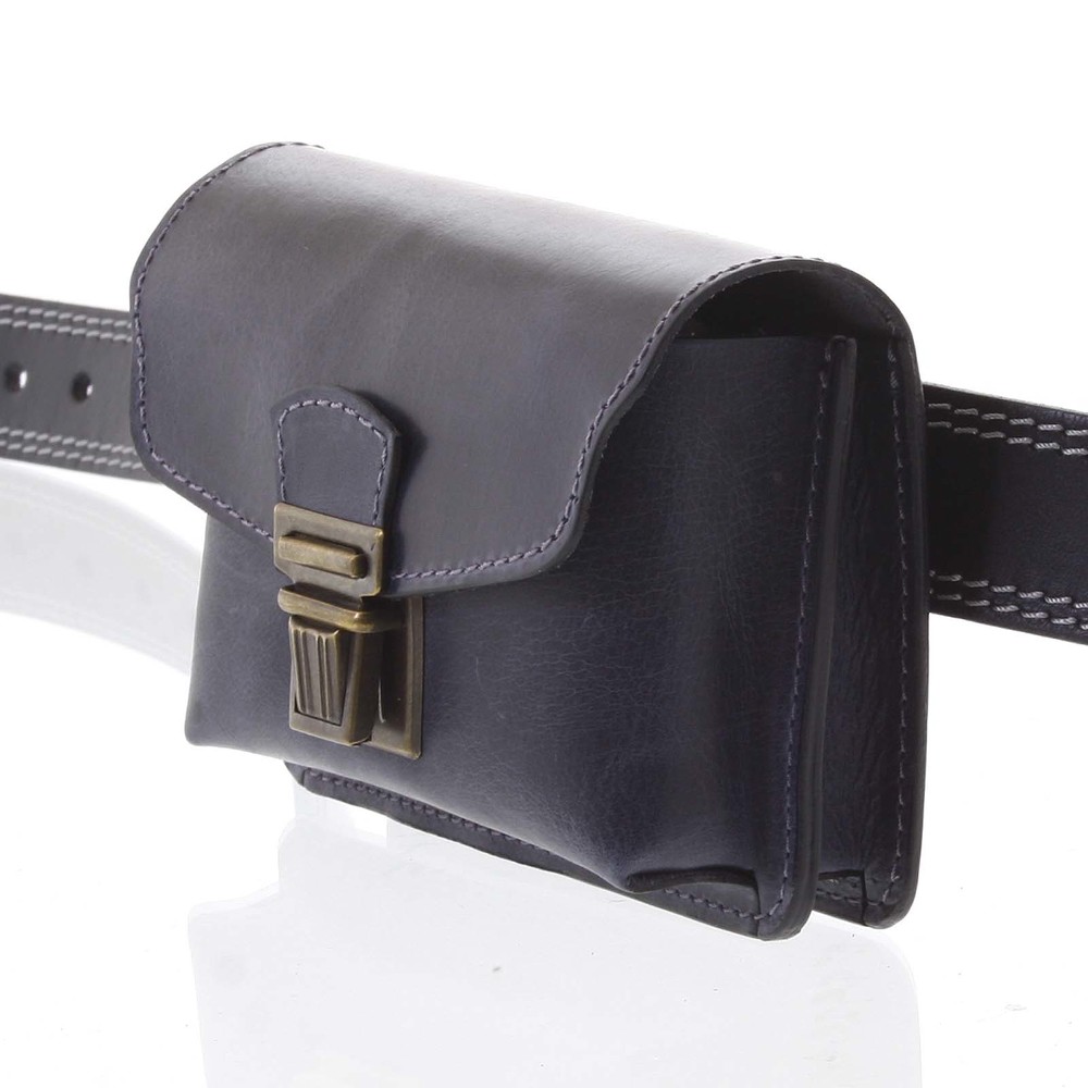 Pánska kožená kapsa na opasok modročierna - Kabea Saak