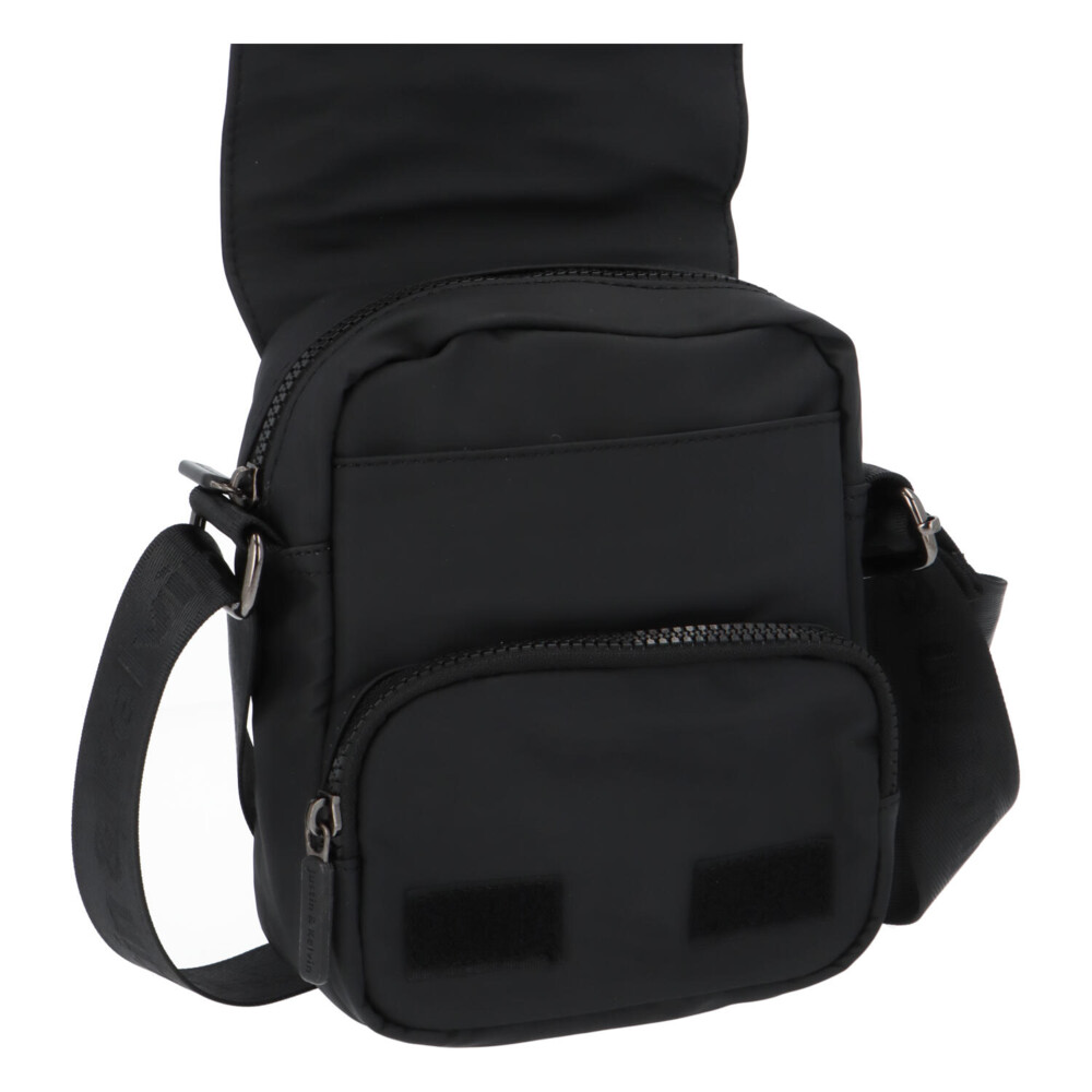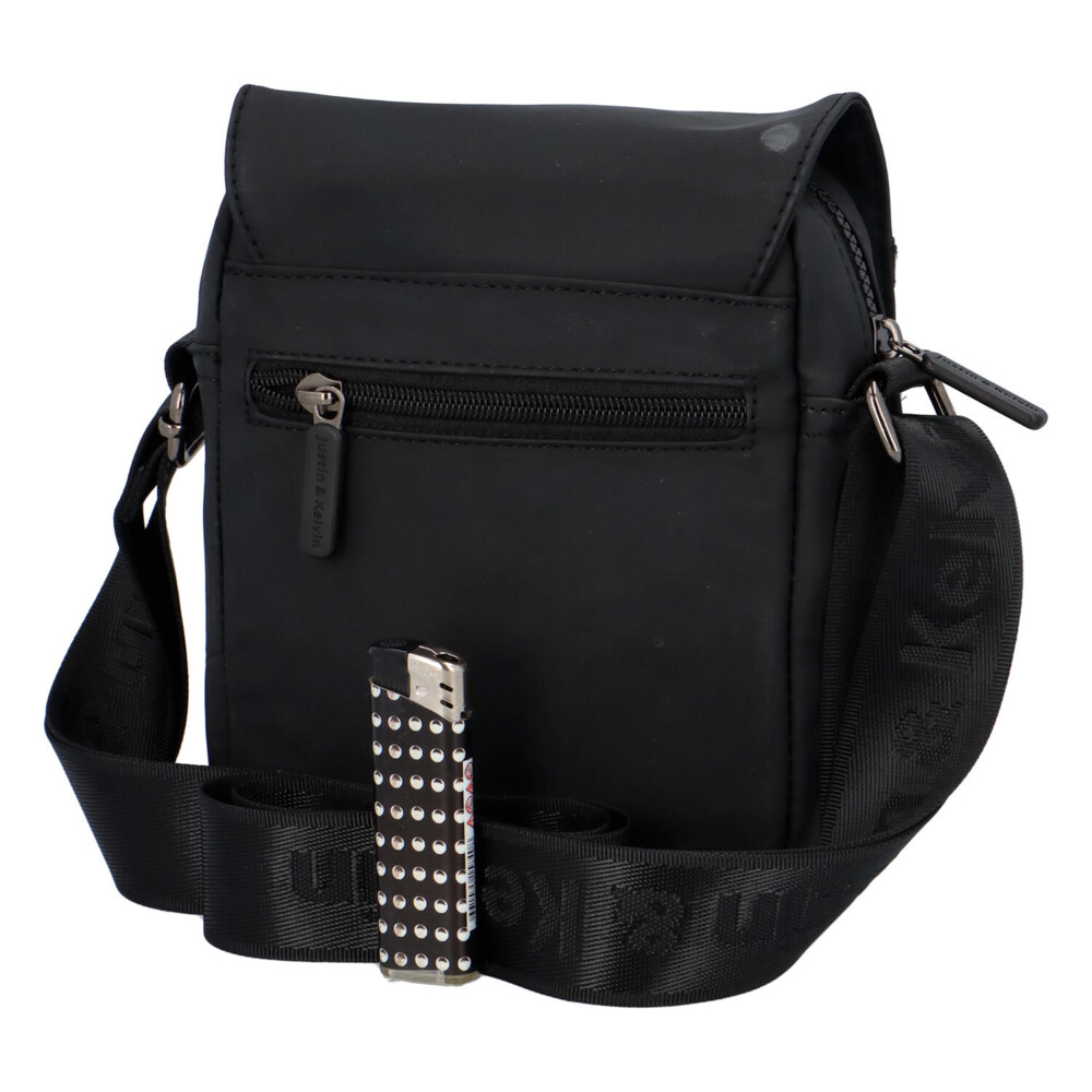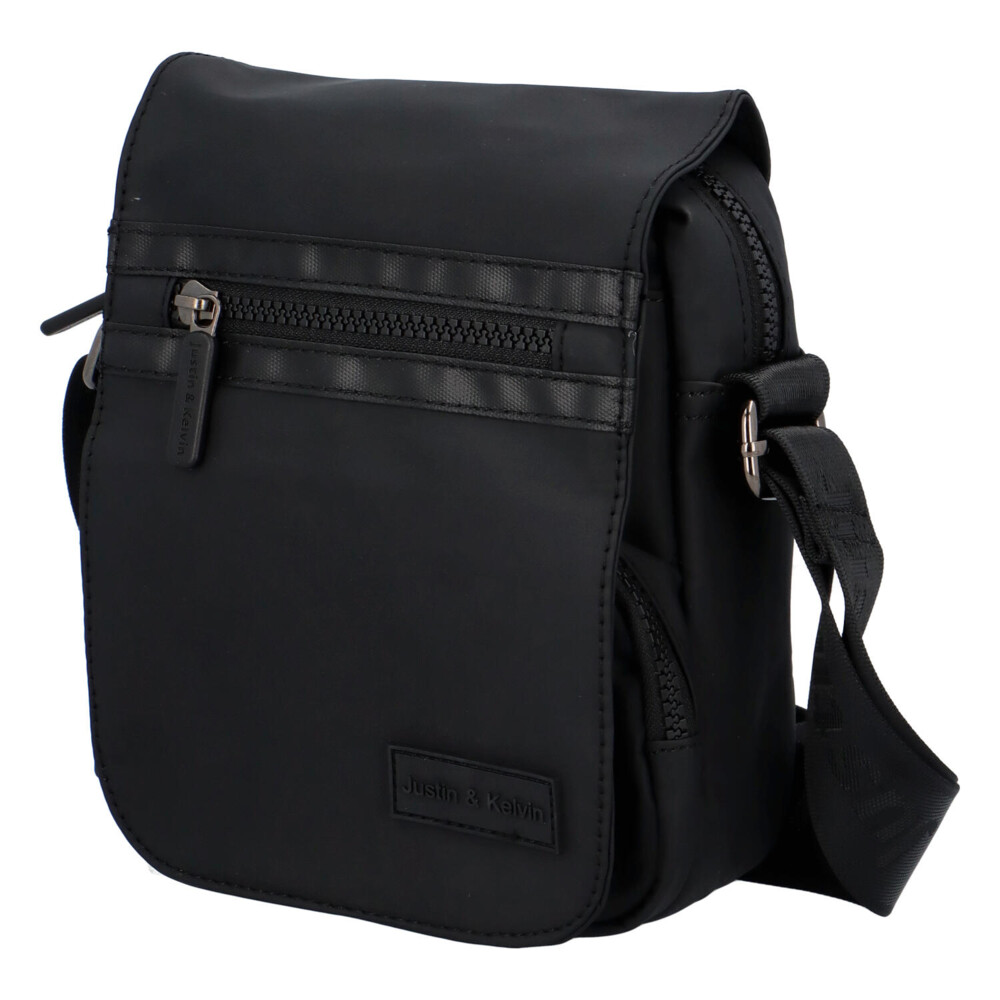 Malá pánska taška z odolného materiálu na každý deň. Značka Justin & Kelvin si pre Vás pripravila športový model do mesta, do práce, na cesty autom alebo na prechádzky. Do tejto čiernej taštičky si uložíte najnutnejšie veci ako je telefón, peňaženka či kľúče. Nosiť ju možno cez plece alebo crossbody. Model disponuje klopou s vreckom na zips, ďalšie vrecká nájdete pod klopou a na zadnej strane tašky. Popruh tašky je z polyesteru. ☂ Taška sa veľmi ľahko čistí a je vodeodolná.