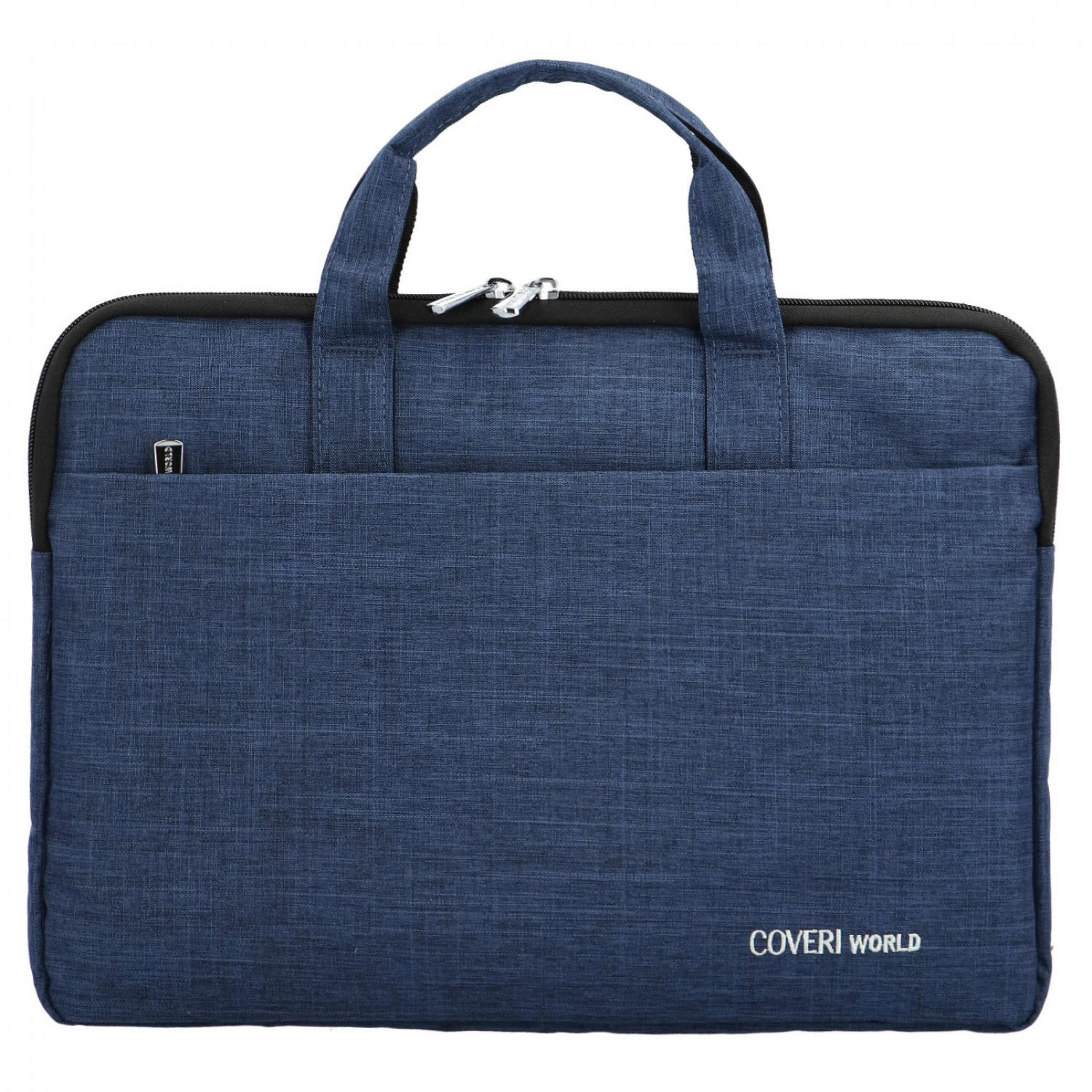 Kvalitná modrá textilná pracovná taška, od Coveri, ktorou okúzlite nielen na pracovisku! Po roztvorení hlavného dvojitého zipsu ponúkne dostatok miesta na uloženie dokladov, notebooku či tabletu. Predná časť tašky je tiež vybavená praktickým vreckom na zips, na uloženie drobností, ktoré chcete mať stále po ruke. Uši sú pevné, akurát do ruky. Predný diel zdobí logo značky. Objednajte ešte dnes a vyskúšajte! Vrátiť ju môžete až za 30 dní!
