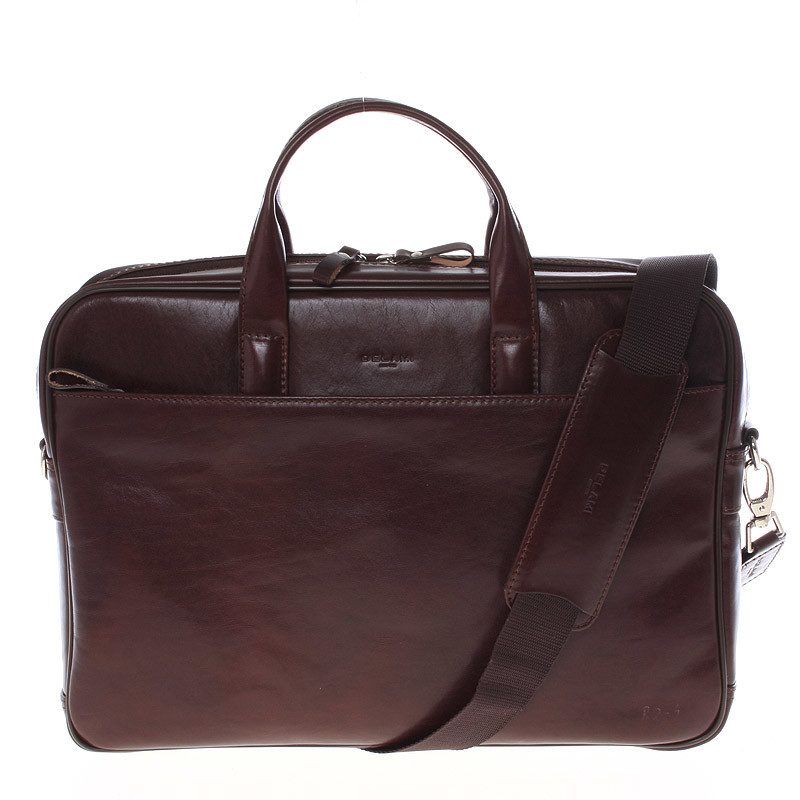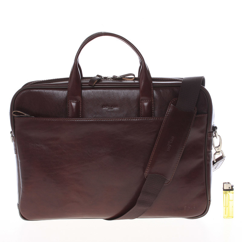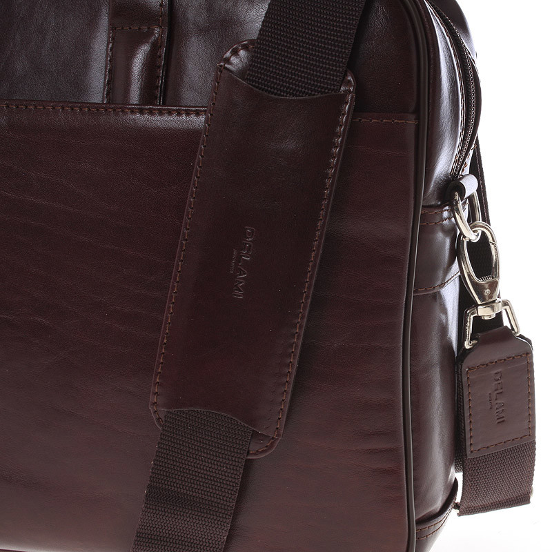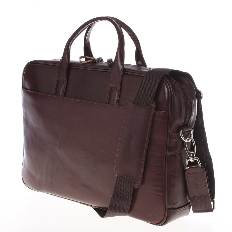 Luxusné tmavo hnedá celokožená taška na notebook - Delami 1247