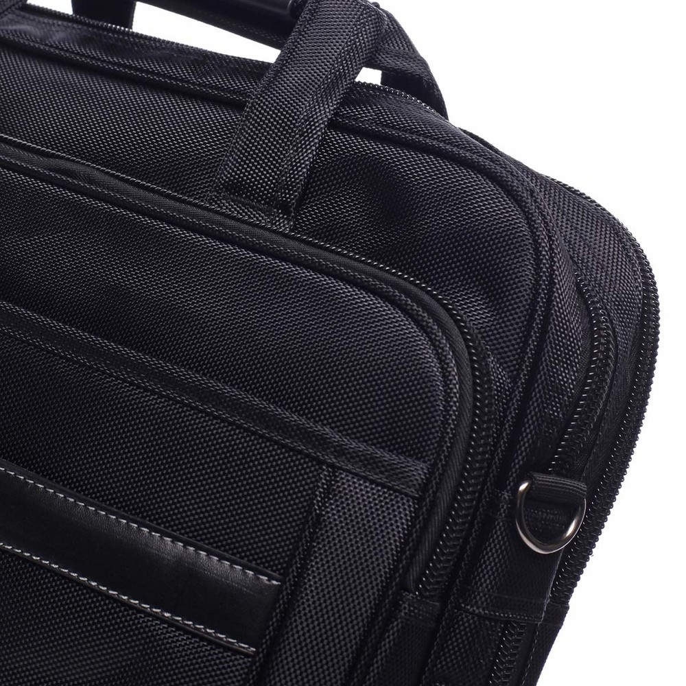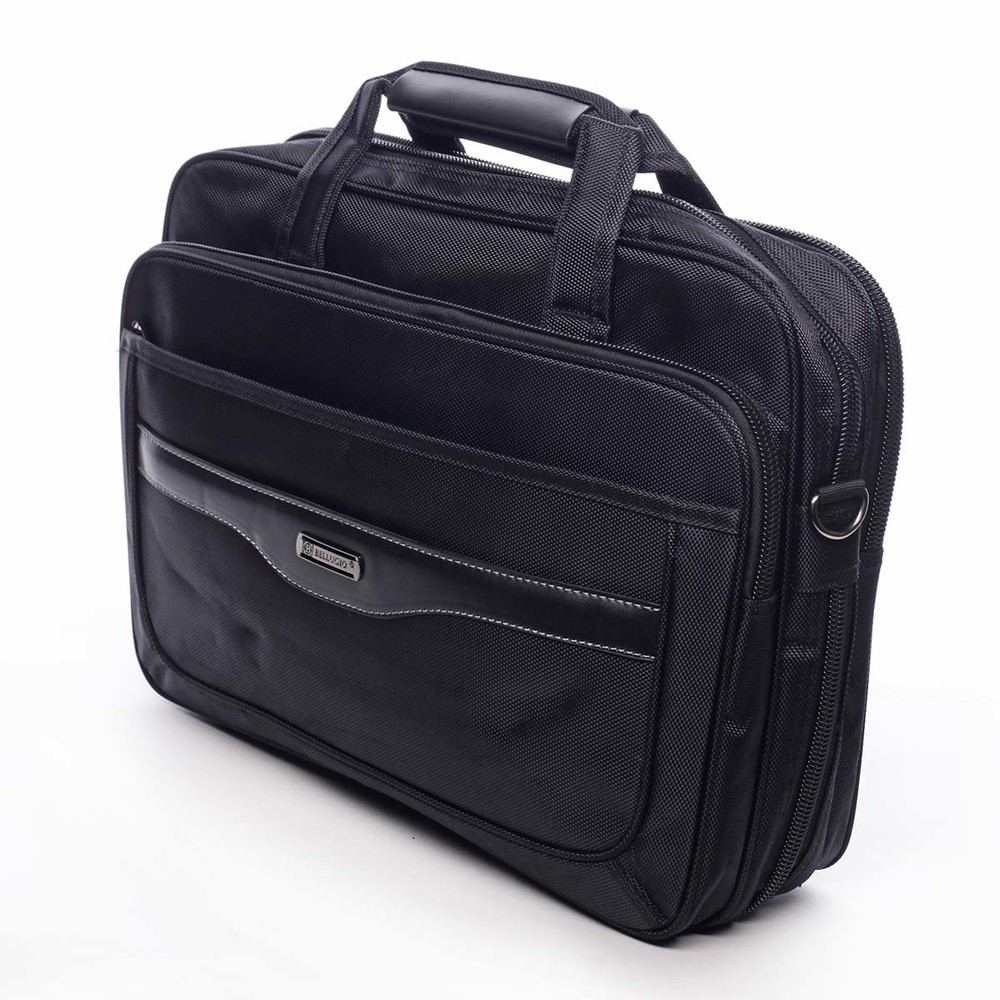 Hľadáte modernú a pritom slušnú pracovnú tašku, ktorá pojme Vaše osobné veci, spisy a v ktorej bude v bezpečí aj Váš notebook? Prinášame Vám novú, látkovú tašku značky Bellugio s pevnejšou konštrukciou. Je to ideálna taška do práce a na cesty. V čiernej farbe môže vyhovovať aj ženám. Predná strana ponúka strednú a veľkú kapsu na zips, kde sú malé vrecká na drobnosti, ceruzky a telefón. Tiež využijete vrecká so suchým zipsom, kde je lem tvorený prešívanou syntetickou kožou. Taška disponuje dvoma hlavnými priestormi a jej dno je možné rozšíriť pomocou zipsu. V prvom z nich je stredné vrecko so zipsom, vo vnútri ďalšieho je podšívaná priehradka na notebook. Popruh k taške má ramennú gumovú výstuž. Držadlá, obšité syntetikou, možno pomocou suchého zipsu pripnúť k sebe. Manipulácia v ruke je teda príjemná. Taške nechýba vrecko na zadnej strane a tiež pútko na madlo kufra, či kufrovej cestovné tašky. Objednajte ešte dnes a vyskúšajte, vrátiť ju môžete až za 30 dní! Novinka 2019!