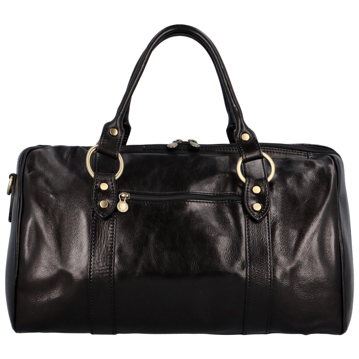 Luxusná a štýlová kožená cestovná taška od Delami, v čiernej farbe. Hlavné vrecko sa otvára na zips, je veľmi priestranné, takže vo vnútri je dostatok miesta. Vnútri nechýba priehradka na zips a ďalšia priehradka na uloženie drobností. Uši sú pevné a krátke do ruky. Dlhý popruh potom slúži na pohodlné nosenie po celý deň, je na pripnutie a s možnosťou regulácie. Na prednej aj zadnej strane je zipsové vrecko pre drobnosti. Objednajte ešte dnes a vyskúšajte! Vrátiť ju môžete až do 30 dní!