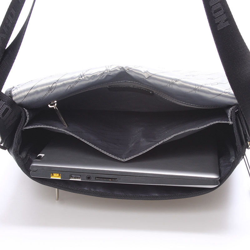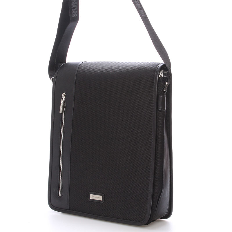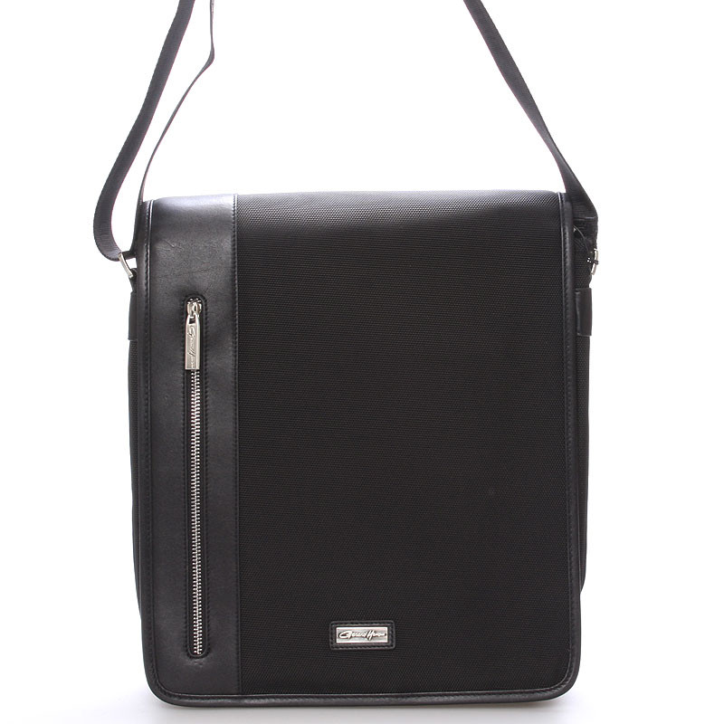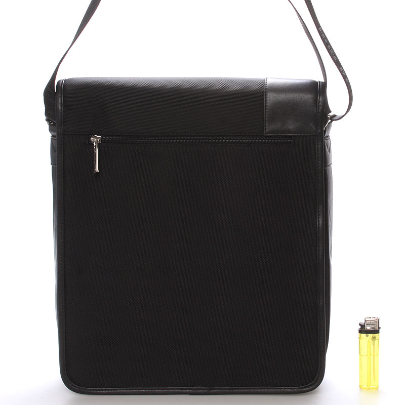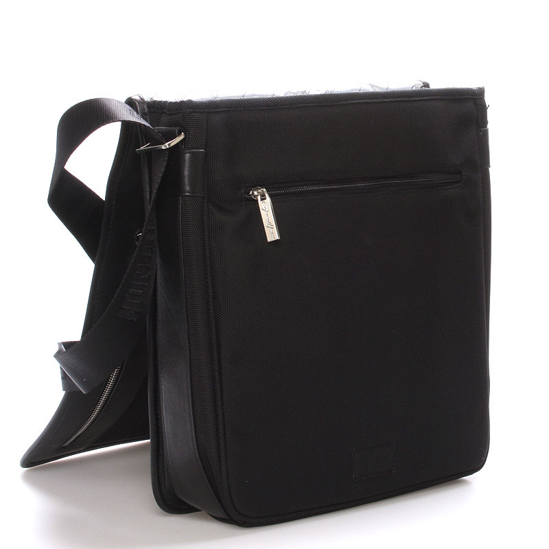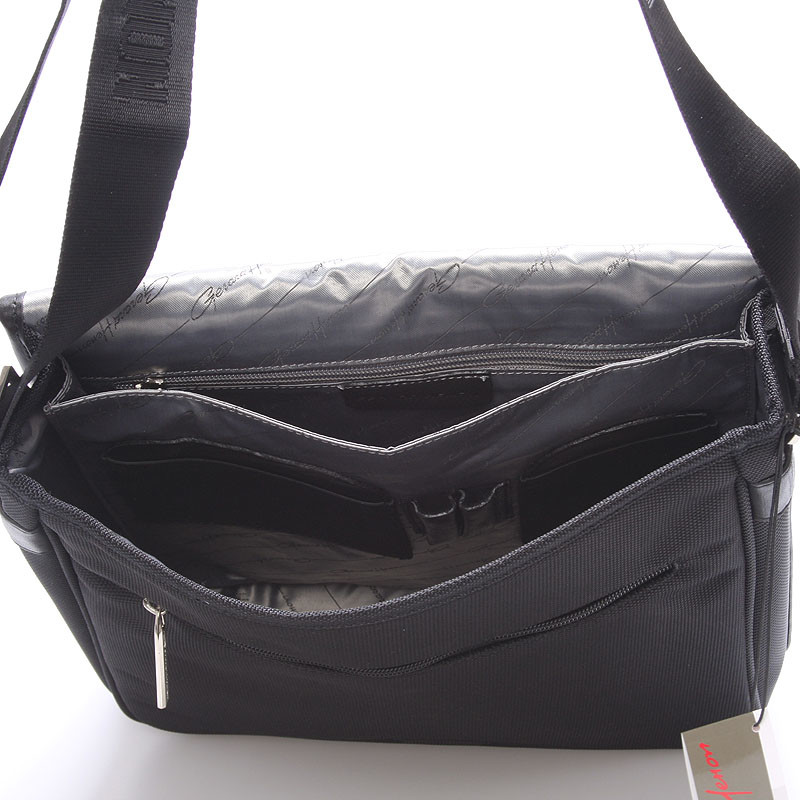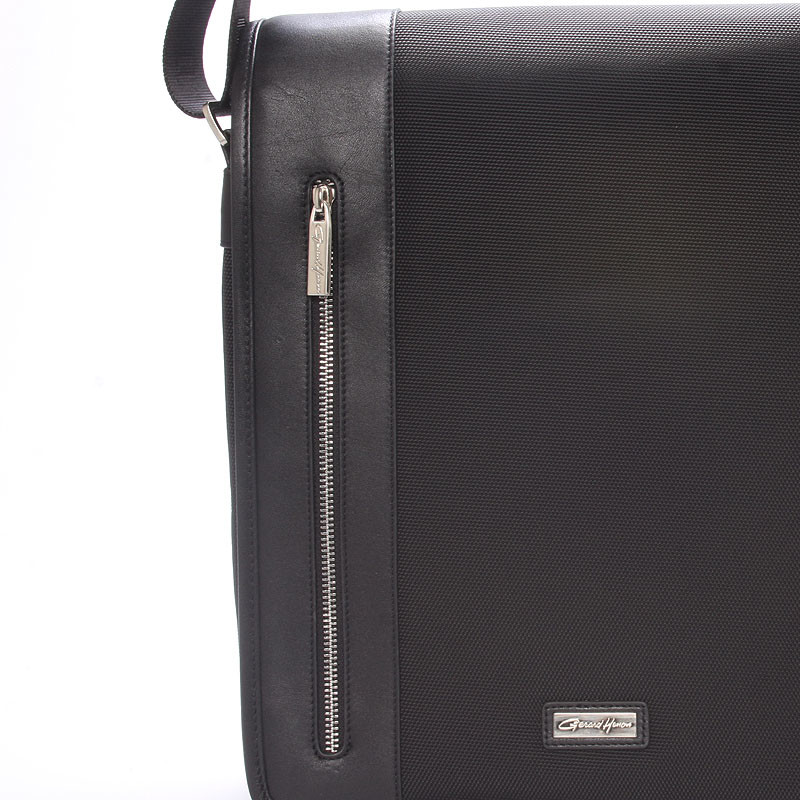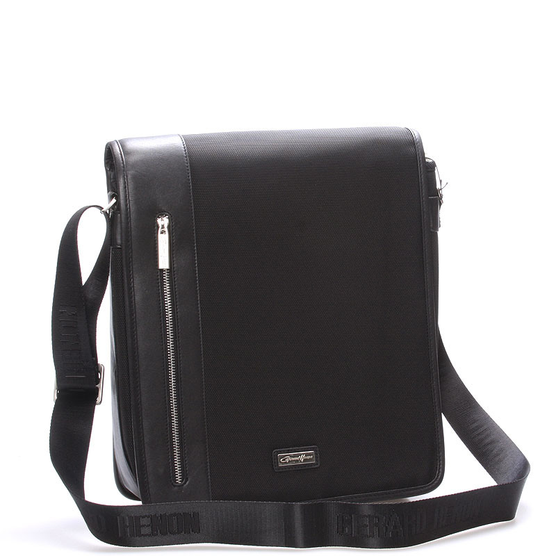 Čierna luxusná originálna taška cez rameno Gerard HENON pre mužov čo majú štýl. Čo jej hovoríte? Je štýlová, neformálna, ale aj elegantná a business. Taška je nylonová s koženými detailmi. Taška je väčšia a zatvára sa príklopkou na magnet. Vnútri sú dve hlavné priehradky, ďalej menšie kapsičky na ceruzky a na drobnosti a jedno na zadnej strane na zips. Na chlopni je rovnako vrecko na zips. Do tašky sa zmestí notebook s max. rozmermi 26 x 30 cm. Novinka. Objednajte ešte dnes a vyskúšajte, vrátiť ju môžete až do 30 dní!